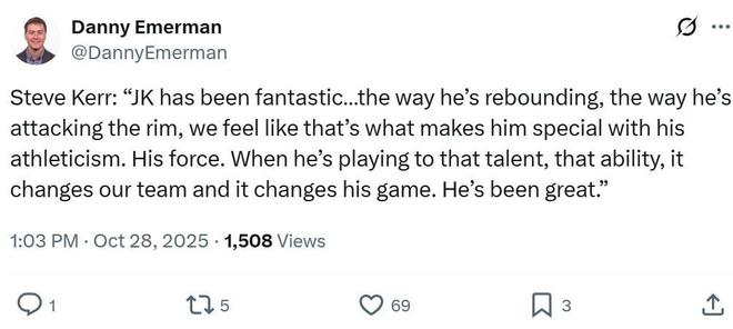 因此科尔对于三人的使用也是慎之又慎,尤其是库里这一点,在开季前三场连续爆发后,本场面对实力相对有限的灰熊,库里仅登场29分钟,三分9中4轻松拿到16分早早下场休息。