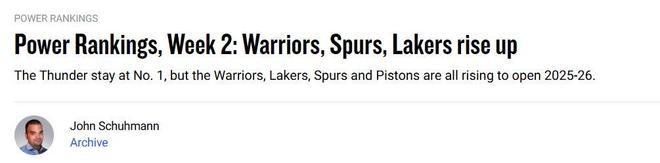 值得一提的是,在本场比赛开始前,NBA官方公布了最新一期的球队实力榜单,其中卫冕冠军雷霆继续高居榜首,勇士队则从第八名一口气飙升至第二。