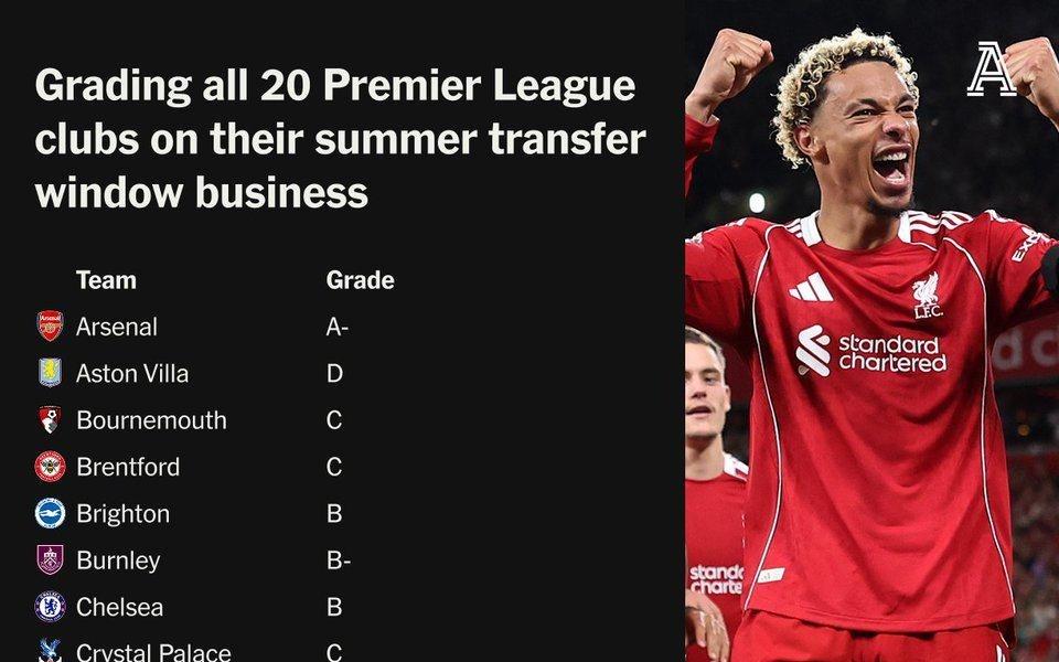 TA英超俱乐部夏窗表现评级:红军、桑德兰A级,枪手A,曼联B