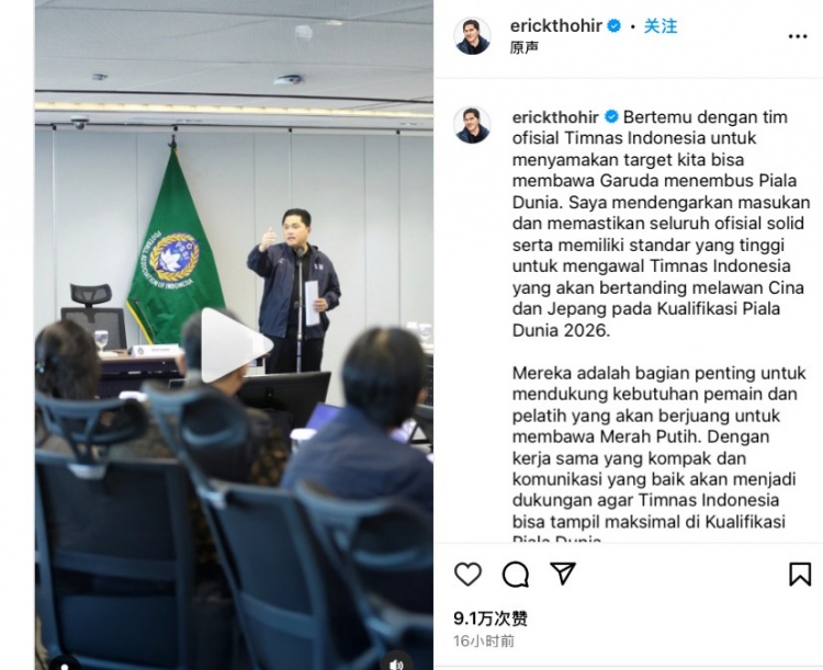 托希尔社媒:为进军世界杯,印尼足协以最高标准为国家队保驾护航