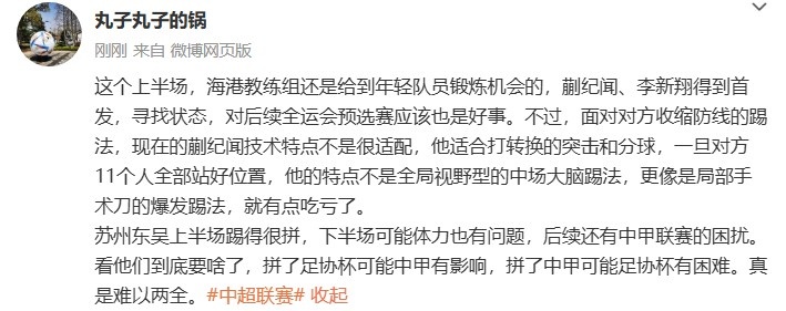 陈华:面对收缩防线的踢法,现在的蒯纪闻技术特点不是很适配