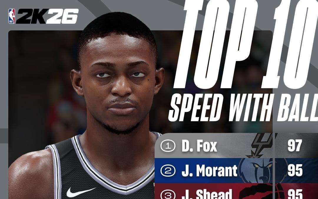 NBA2K官方:福克斯领跑速度能力值,欧文控球第一力压库里
