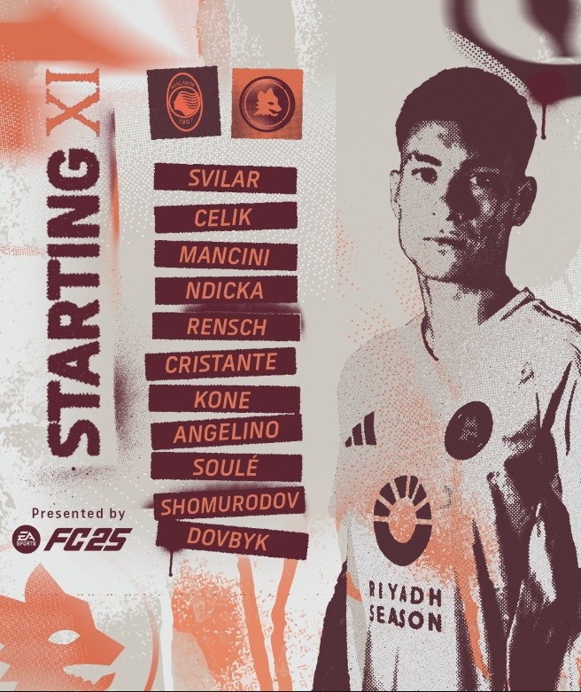 罗马VS亚特兰大首发:苏莱出战,德凯特拉雷、雷特吉、卢克曼在列