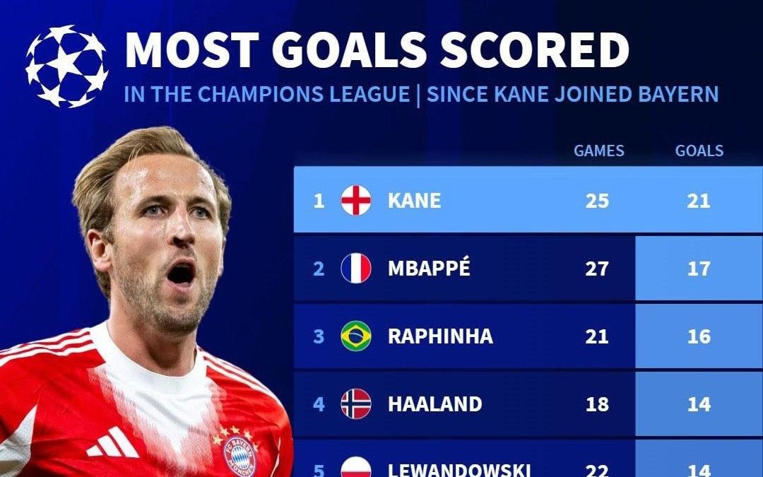拜仁大腿踢疯了!6场10球3助,场均超2球!凯恩欧冠圆梦不远啦
