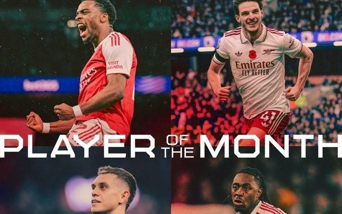 阿森纳11月最佳球员候选:廷贝尔、赖斯、特罗萨德、埃泽在列