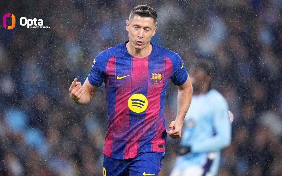 莱万西甲生涯进74球,同期单一联赛进球数仅次于哈兰德和凯恩