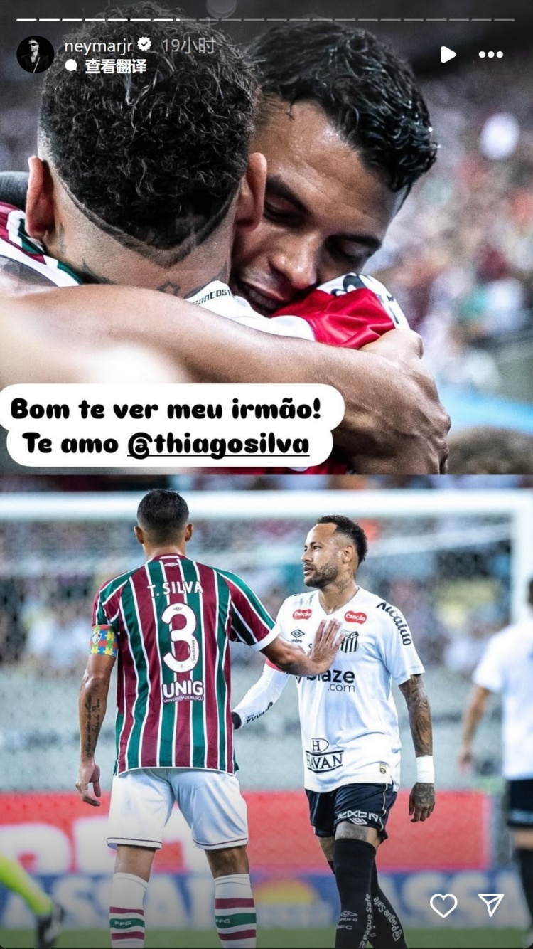 内马尔晒与蒂亚戈席尔瓦拥抱照片:很高兴见到你,我的兄弟